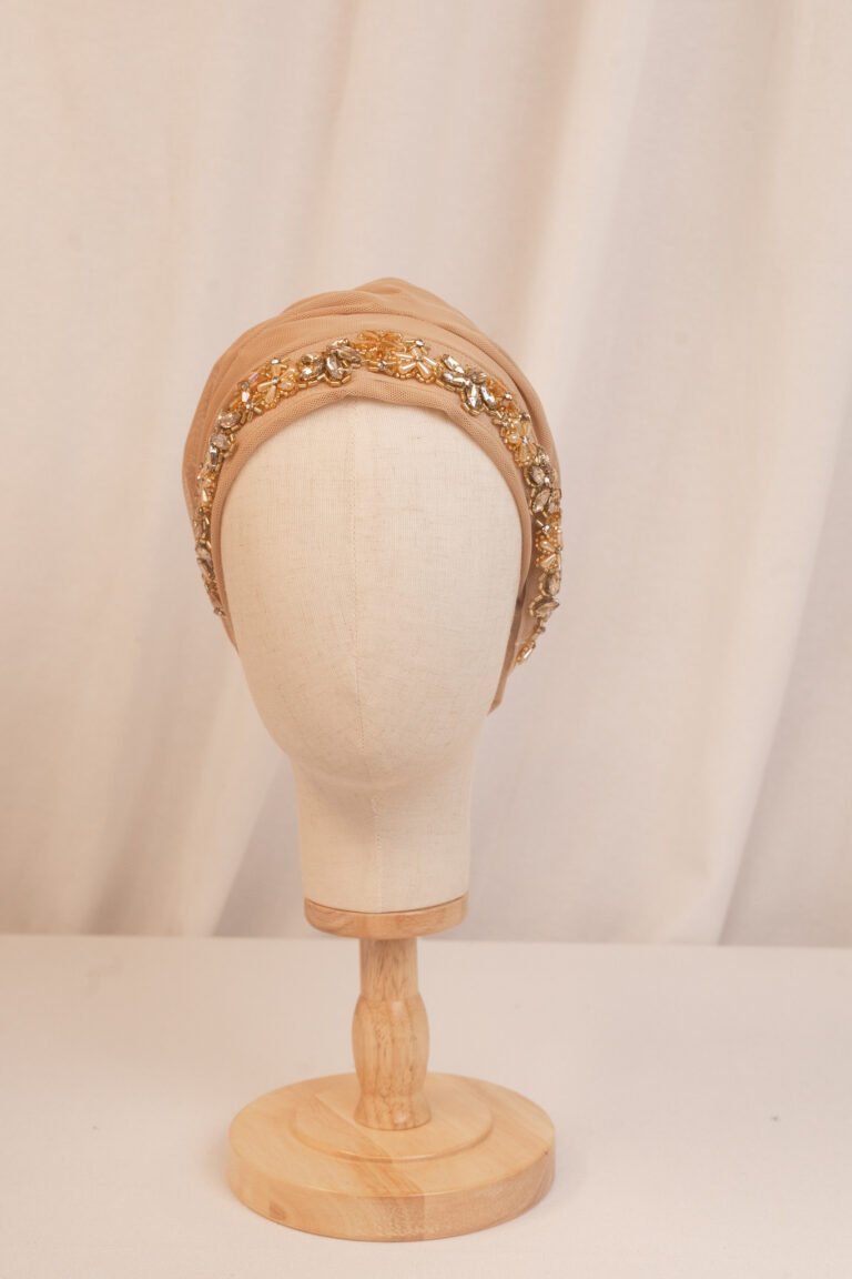 Embrace effortless sophistication with the Golden Aura Classic Turban, a timeless piece that defines modern grace. With its flowing mesh layers and soft golden tone, it adds warmth and refinement to your look without the need for embellishment. Simple yet striking, this turban transitions seamlessly from a polished day look to a graceful evening ensemble.