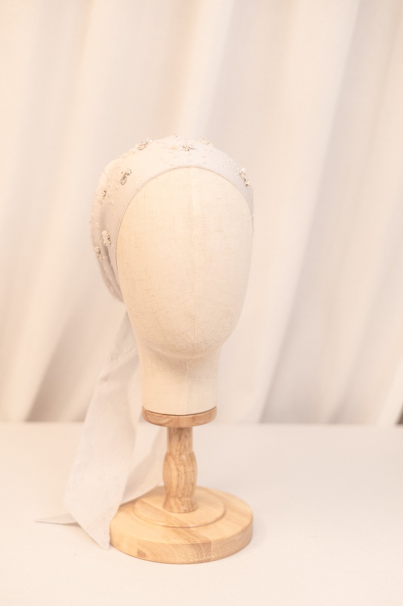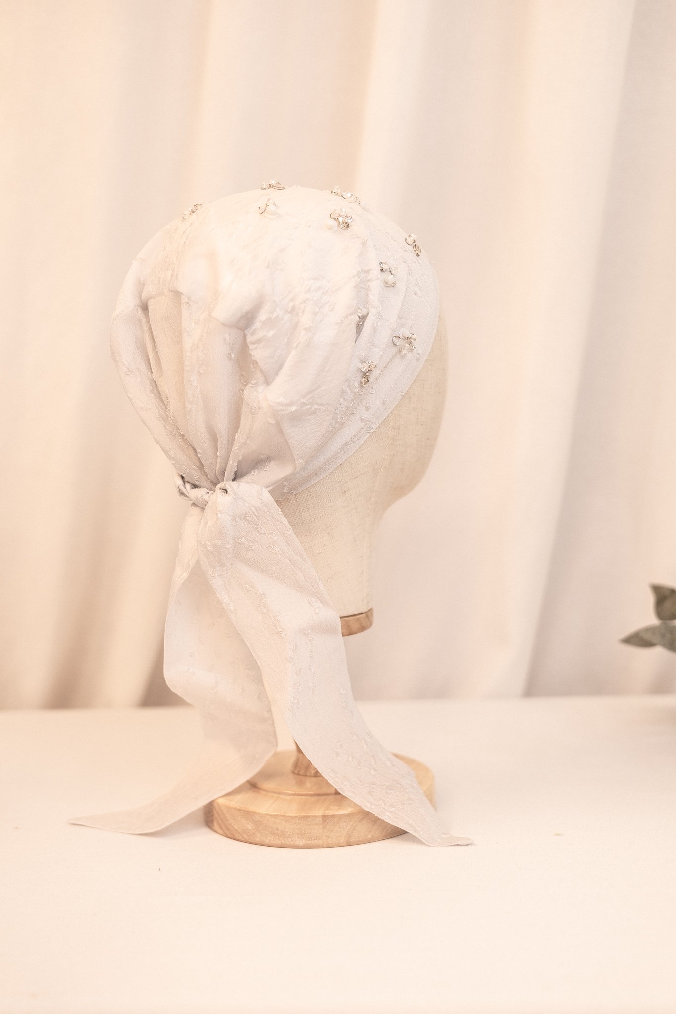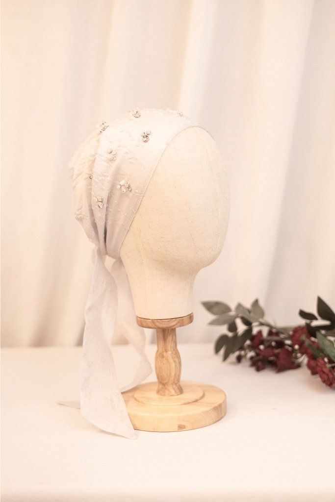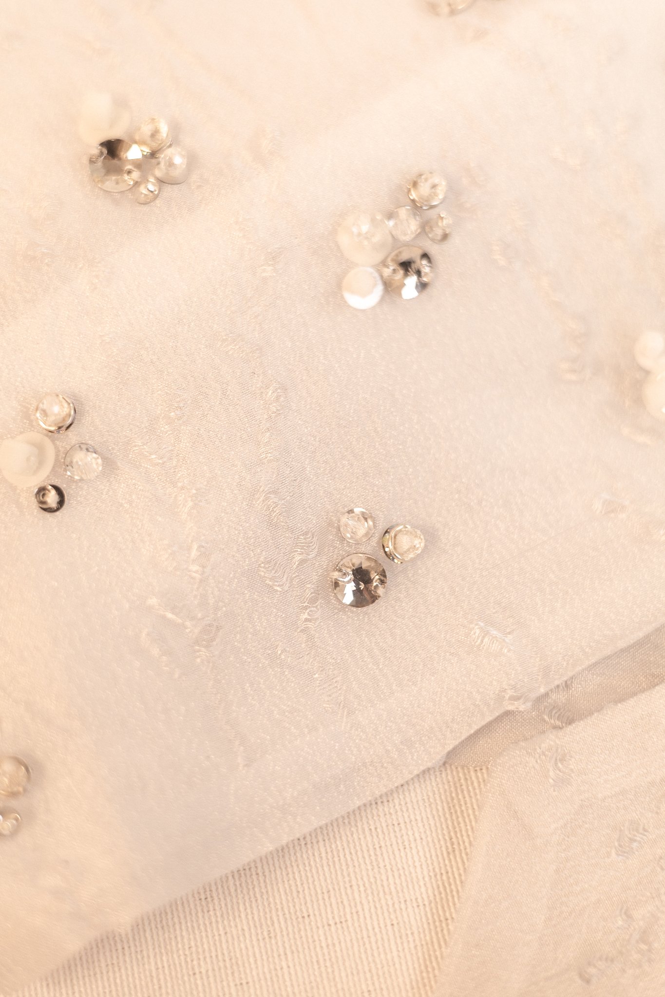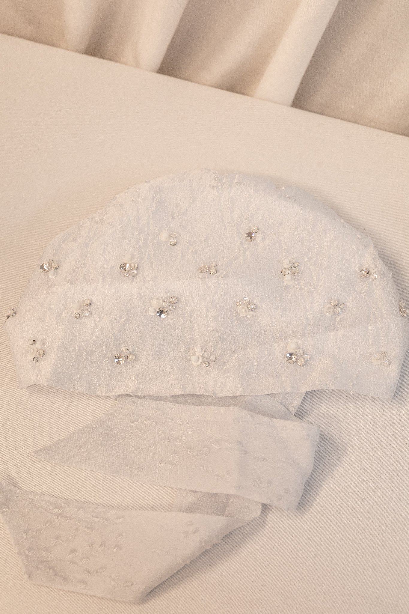A luminous piece that blends simplicity with sophistication. The soft white tone and subtle crystal details create a delicate radiance, elegant yet understated. Perfect for evenings, bridal moments, or any occasion that calls for effortless grace