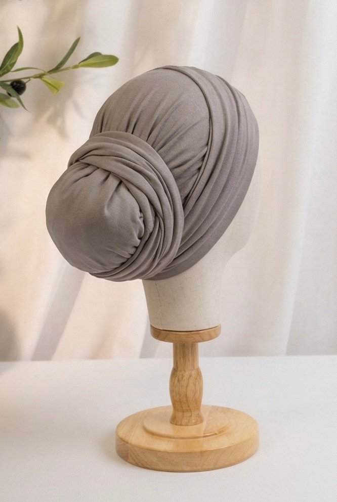 A soft, neutral tone designed for effortless everyday elegance. This turban features a smooth, structured that offers both comfort and a refined finish, making it an essential piece for a polished look. Minimal, versatile, and intentionally simple.