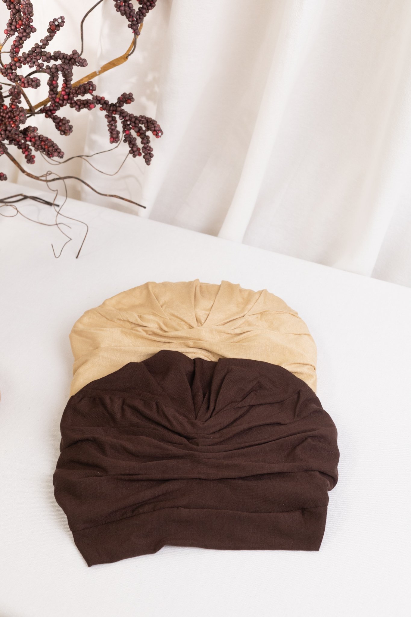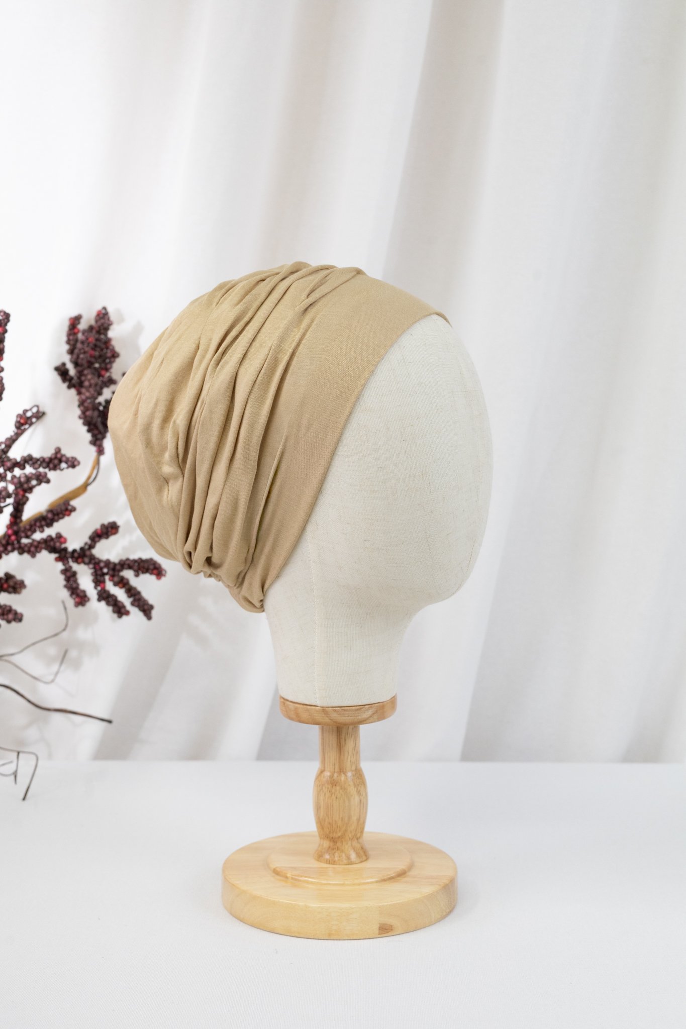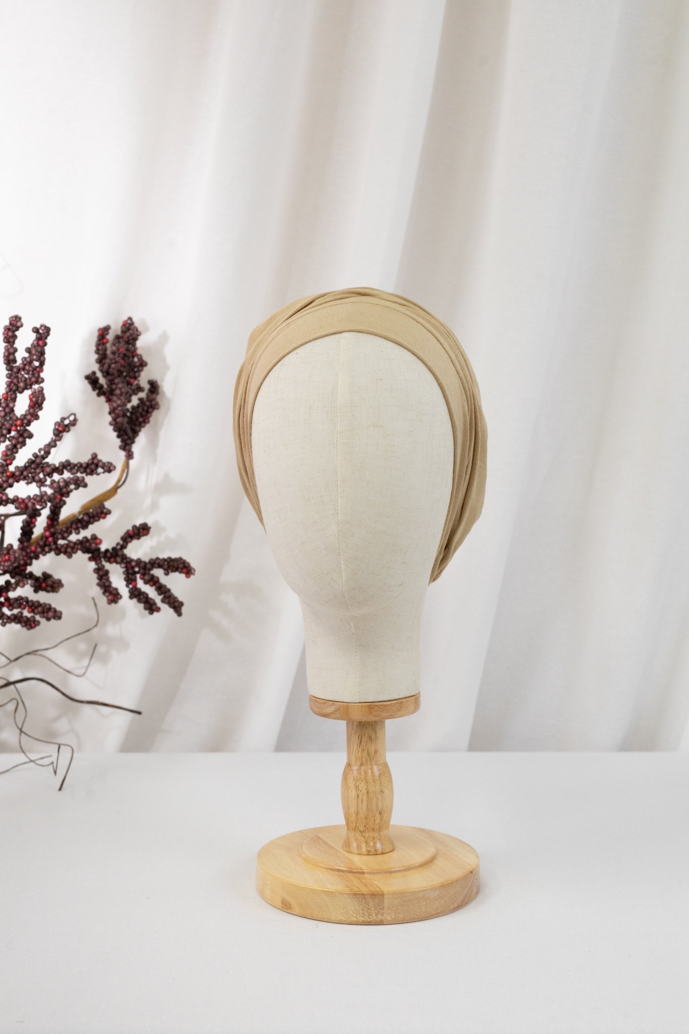 The Sandstone Turban blends comfort and sophistication with its smooth, ruched design and warm beige tone. Lightweight, stretchable, and easy to wear, it’s the perfect everyday piece for a polished, natural look.